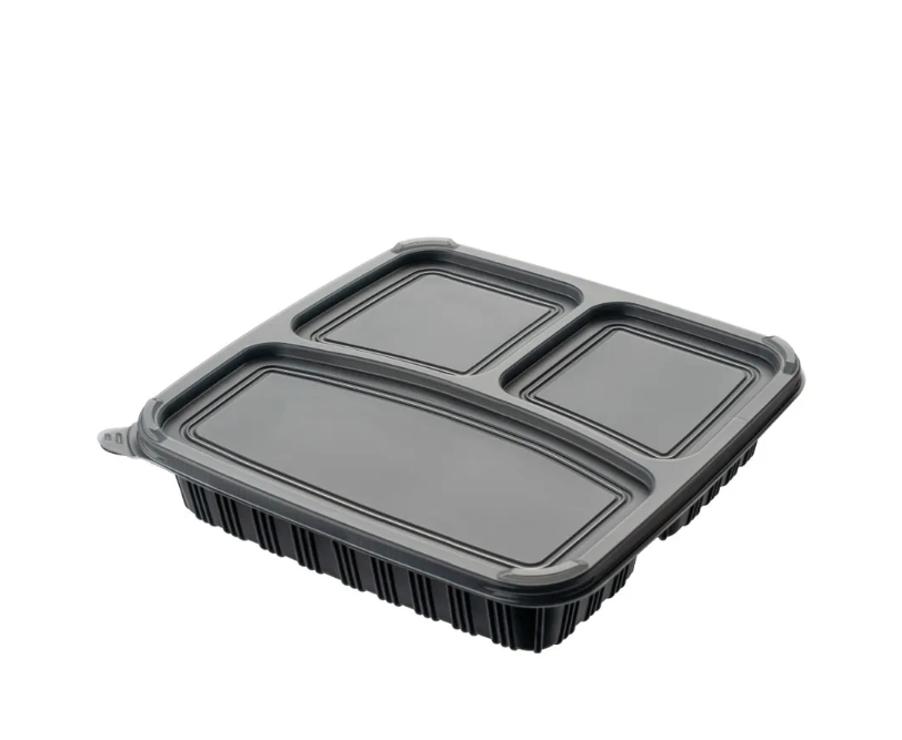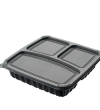 3 Compartment Food Container - Black Base + Lids (150 Pcs Set)