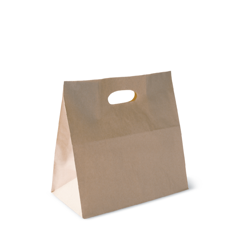This D Bag features a die-cut handle with a sustainable supporting paper patch providing a truly environmentally conscious alternative to plastic bags. This D Bag can safely carry up to 3kgs and standing upright on the counter are ideal for easily loading takeaway food orders or at checkouts.  Featuring a D die-cut handle these bags can be easily stacked on shelves or hung at checkouts. Made from recycled paper this bag is reusable and kerbside recyclable. By choosing this product, you are supporting the  responsible management and care of the world’s forests.